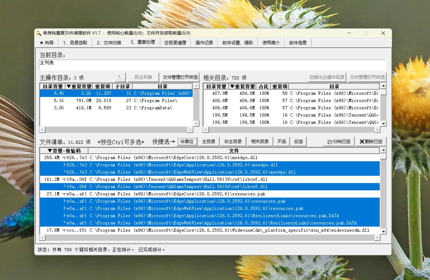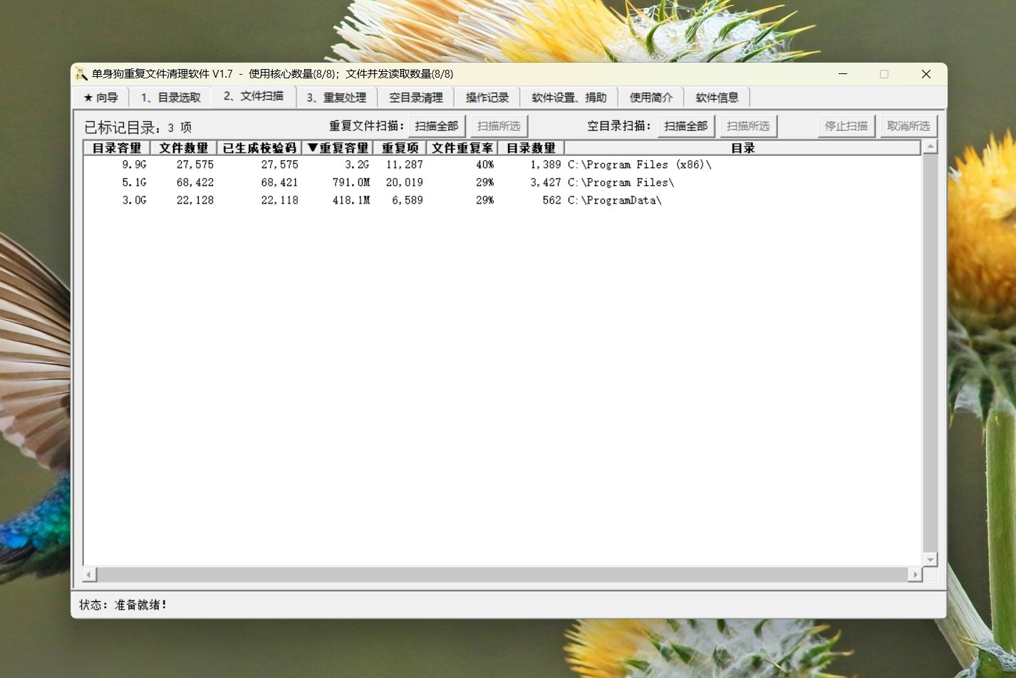 单身狗重复文件清理软件 (只要三步,清理重复文件) - 最新版:1.7,支持多核CPU并行处理